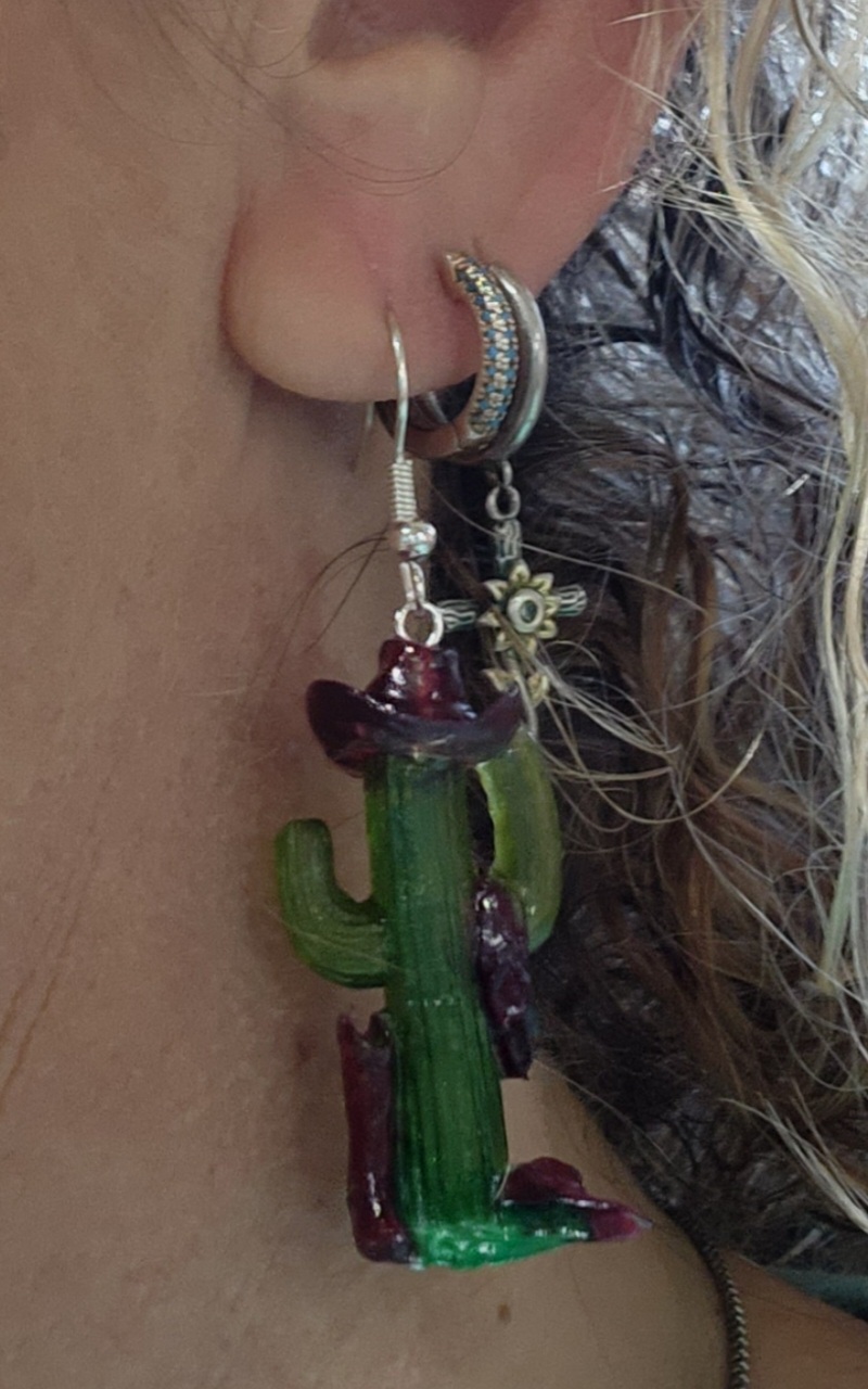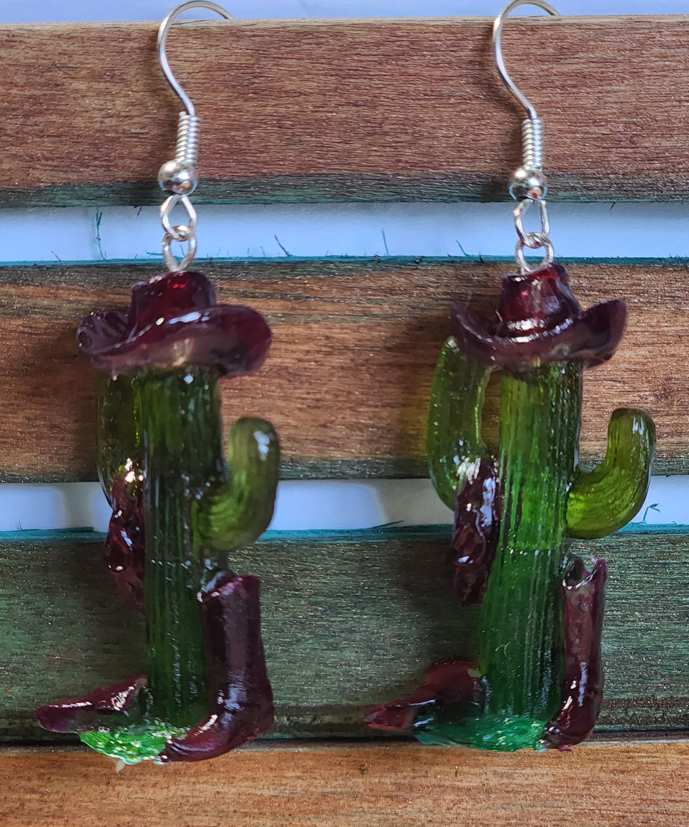 Handcrafted resin cowboy cactus earrings. No 2 alike. Several colors to choose from.