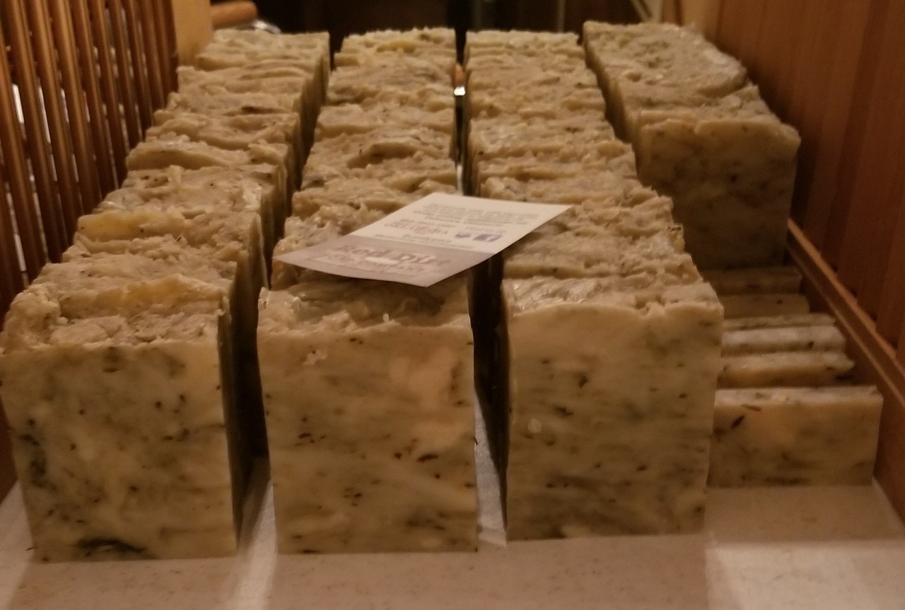 Breathe in the sweet and woody scent of eucalyptus and prepare to feel alive. Eucalyptus opens respiratory passages and stimulates the immune system. It feels cool to the skin, but warm and healing to the muscles. For headaches and sinus congestion. Ingredients: coconut oil, olive oil, soybean oil, wheat germ, sodium hydroxide (lye), distilled water, aloe, essential oil, peppermint leaves.