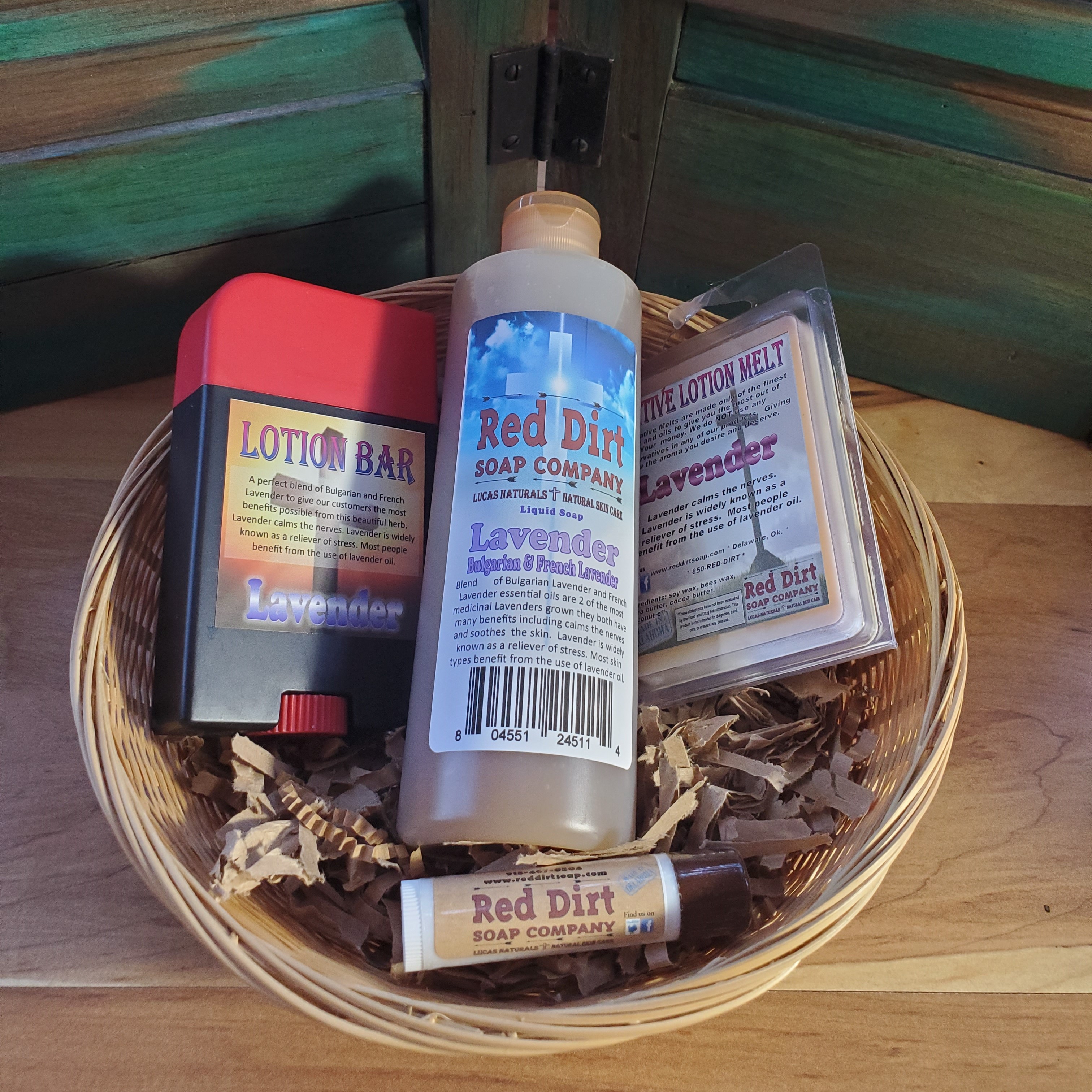 A great gift basket full of wonderful handmade natural skin care products to make sure your skin stays soft and glowing. (basket may vary)